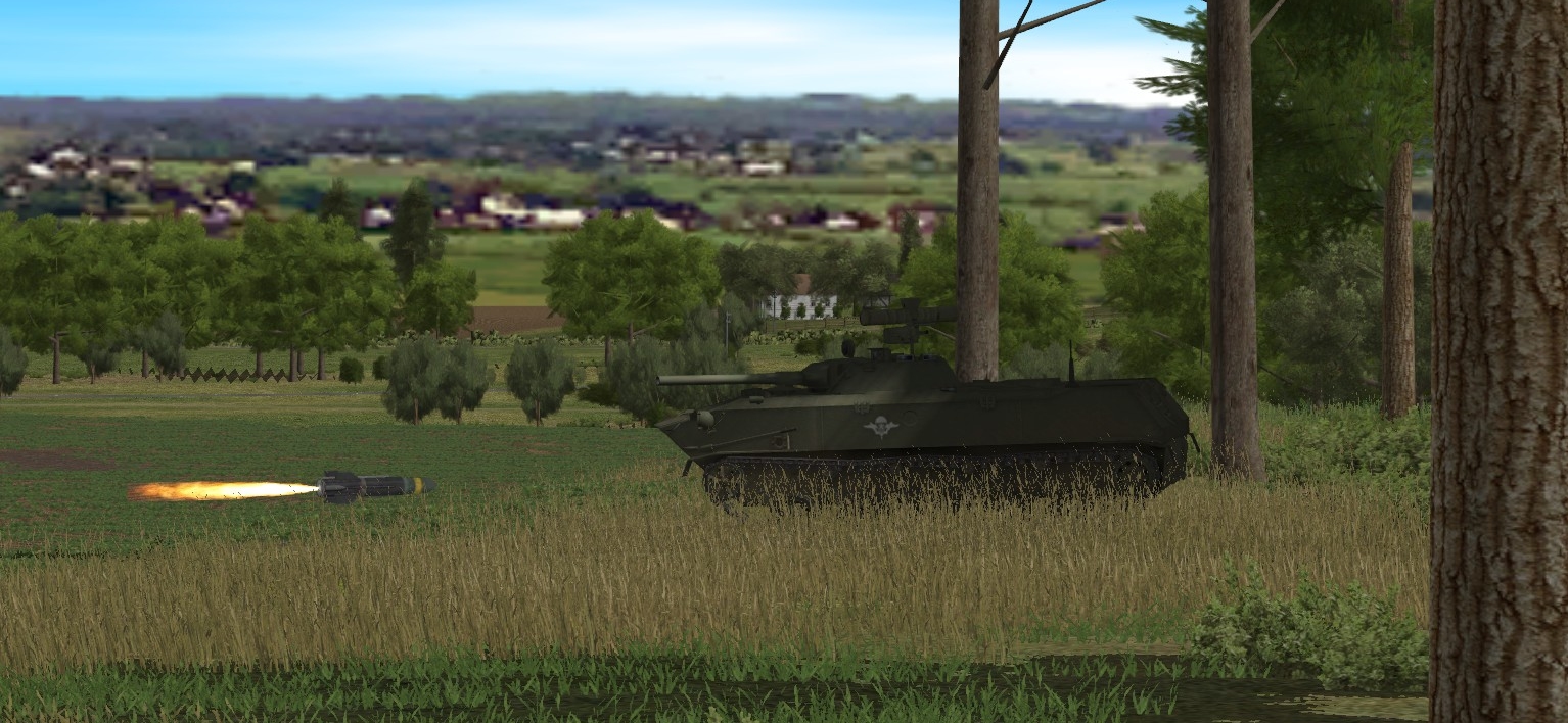 It’s a little hard to show with screenshots, but between this Striker and its victim are several bands of thickish trees. Quite how my AFV managed to spot its victim then thread a missile through all that greenery, I really couldn’t say.