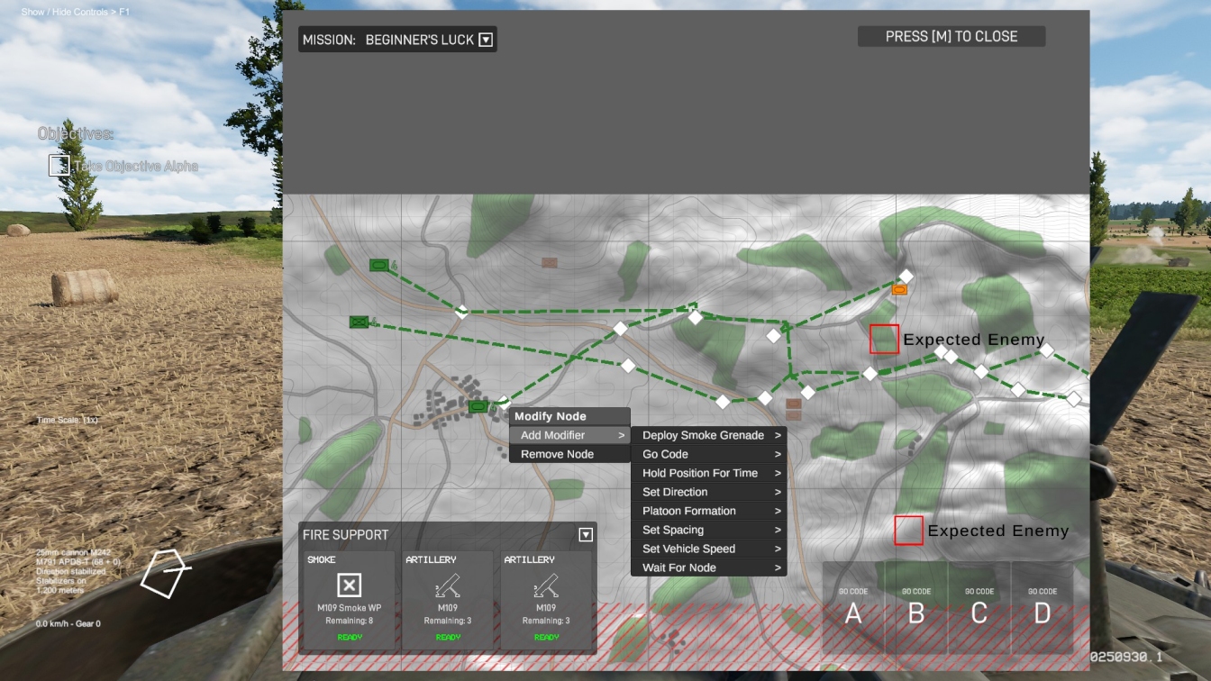 A recently added ‘RTS mode’ gives Gunner, HEAT, PC! players total control over BLUFOR battle plans. Only available in ten scenarios at present, the additional powers mean you no longer have to vehicle hop in order to ensure friendly forces complement your preferred play style and mission approach. Nuanced, go code-linked waypoints can be added to the map at any time