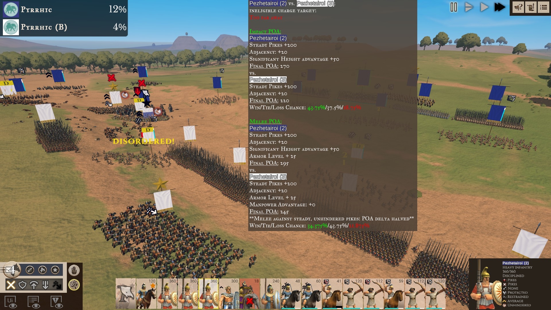 Is it just me or would the latest Strategos demo benefit from a ‘terse tooltips’ option? I know the mesmerising scraps it serves up are pauseable, but I still feel the vital info contained in lengthy number-heavy combat predictions like this one (^) could be presented more elegantly.