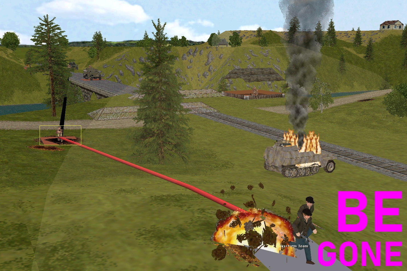 In the closing moments of the sixty a foxholed MG 42 opens up on the lever cottage. Hopefully the combined firepower of the halftrack and the Brit infantry will quickly silence this new threat. Unfortunately, the Archer can’t quite see the nest from its current position.