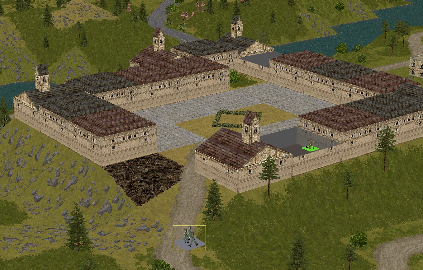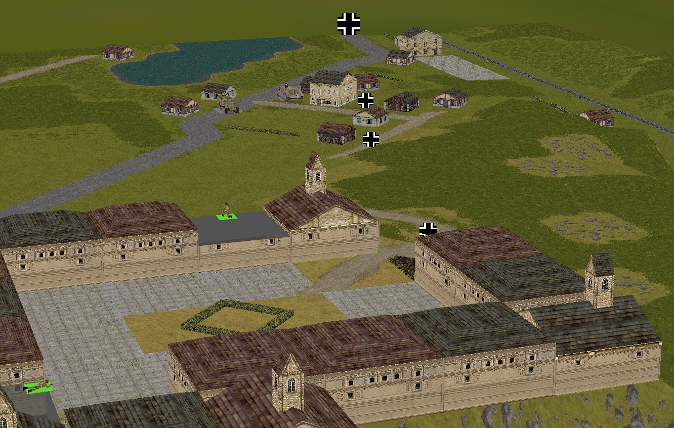 The Jerry squad on the move near the castle gate vanishes eight seconds into the turn. From their last-known position and angle my guess would be that they are headed for the rail bridge not the castle courtyard.
