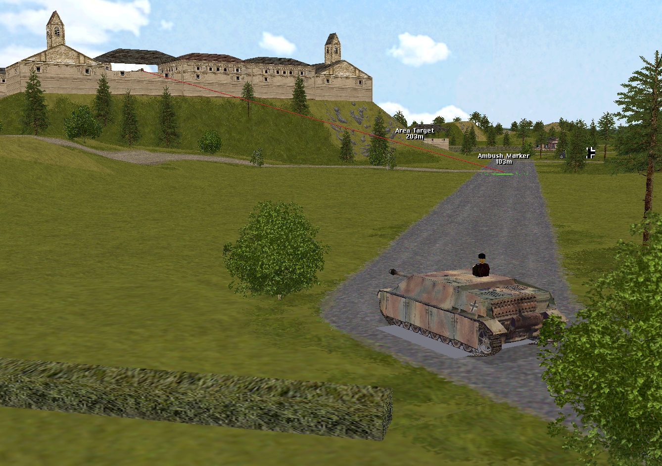 One of the reasons I prefer first-generation Combat Mission to second-generation Combat Mission is the AI. Although the German troops in Bounce the Bogen don’t have a carefully prepared battle plan to guide them, at present they’re doing a fine job of keeping the units of the thin-on-the-ground Comment Commanders at bay.