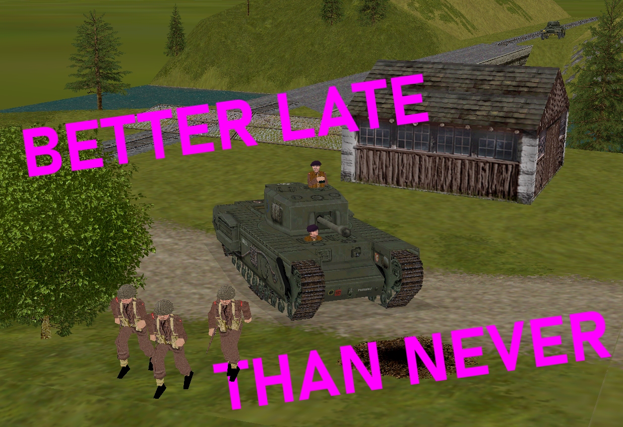 I couldn’t decide which ‘B word’ screenshot to lead with today so have provided three. The first is a nod to the Comment Commanders’ tardy taxi. The ponderous Churchill VIII finally delivered its passengers – Sergeant Forester’s squad – this turn!
