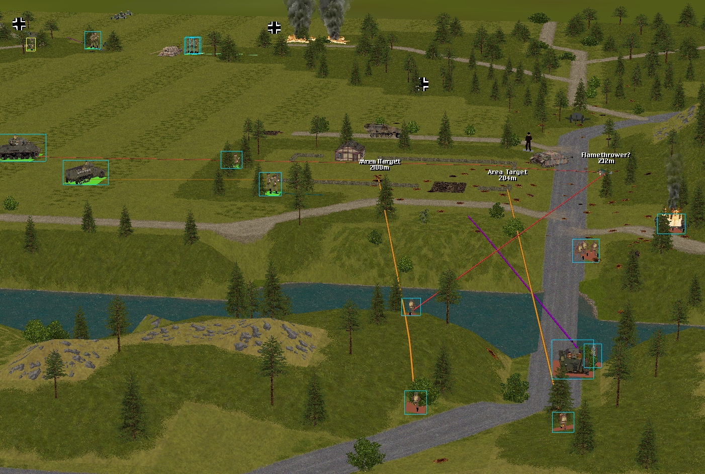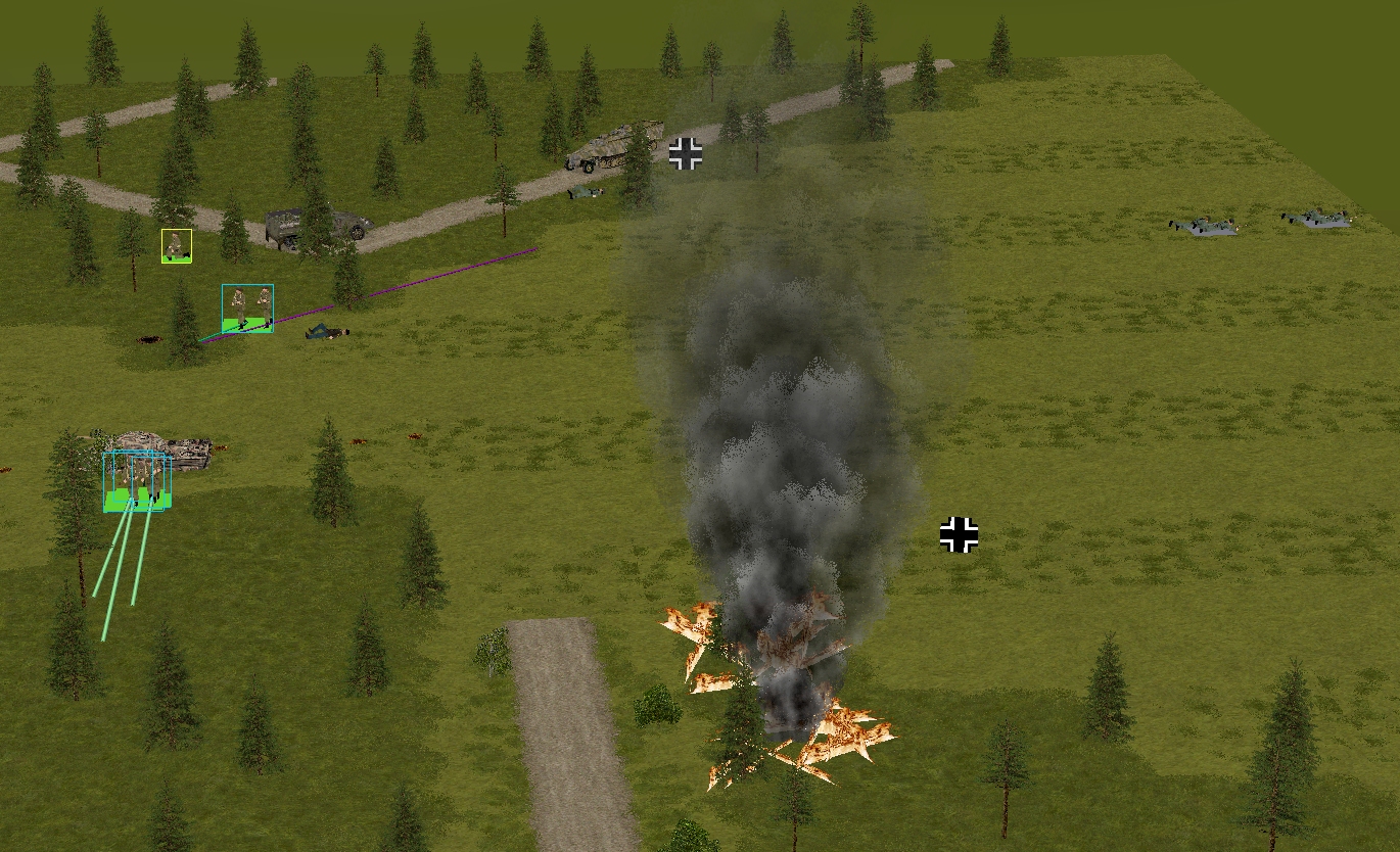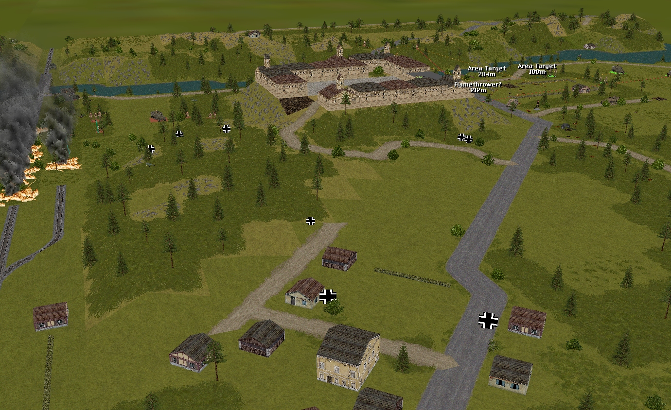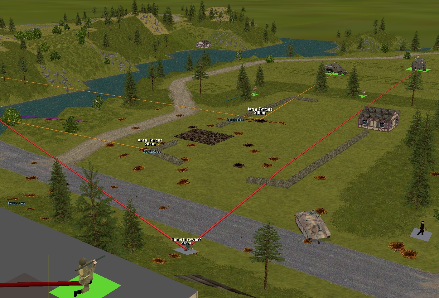 Incredibly, despite taking fire from numerous directions, the German flamethrower team is still alive and kicking cowering at the end of the sixty.