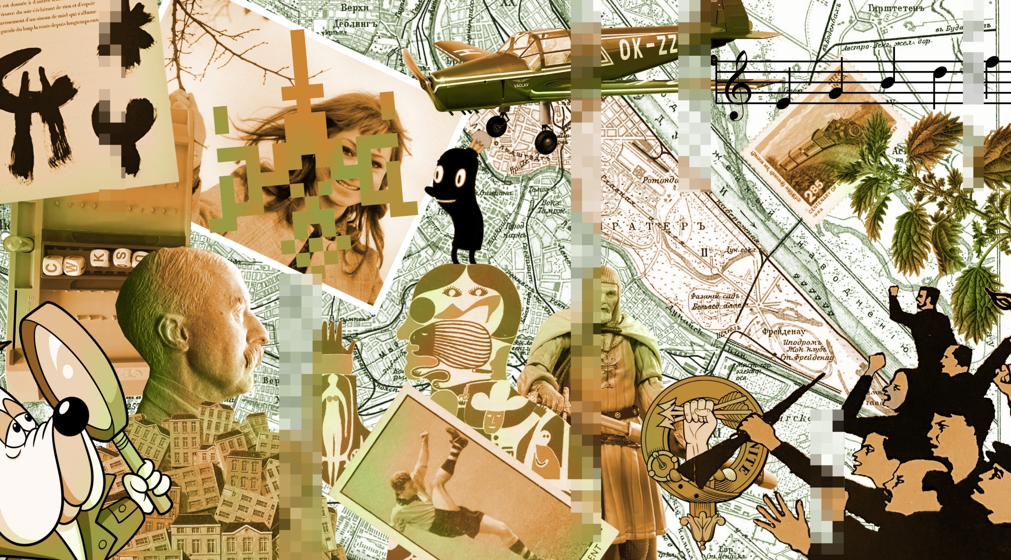 Roman is feeling nostalgic. ID the collage theme and explain the presence of all eighteen components to complete the defox.