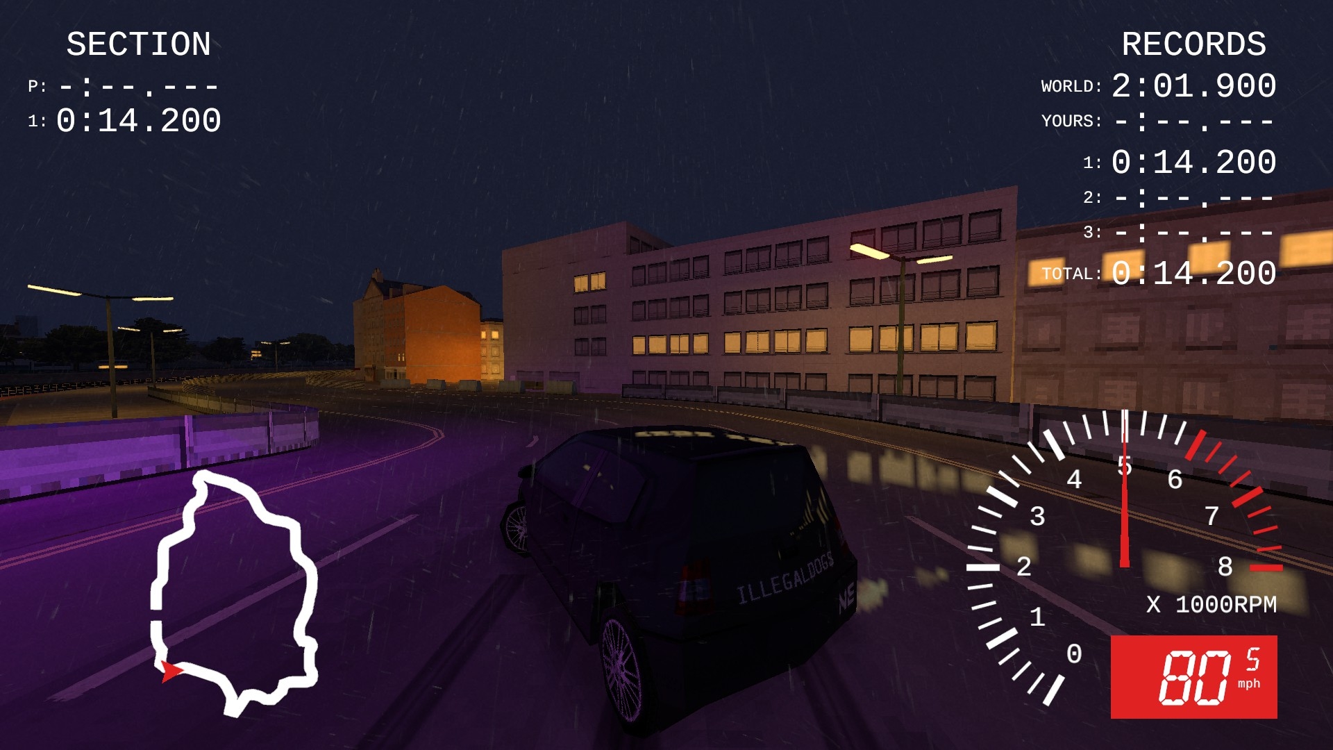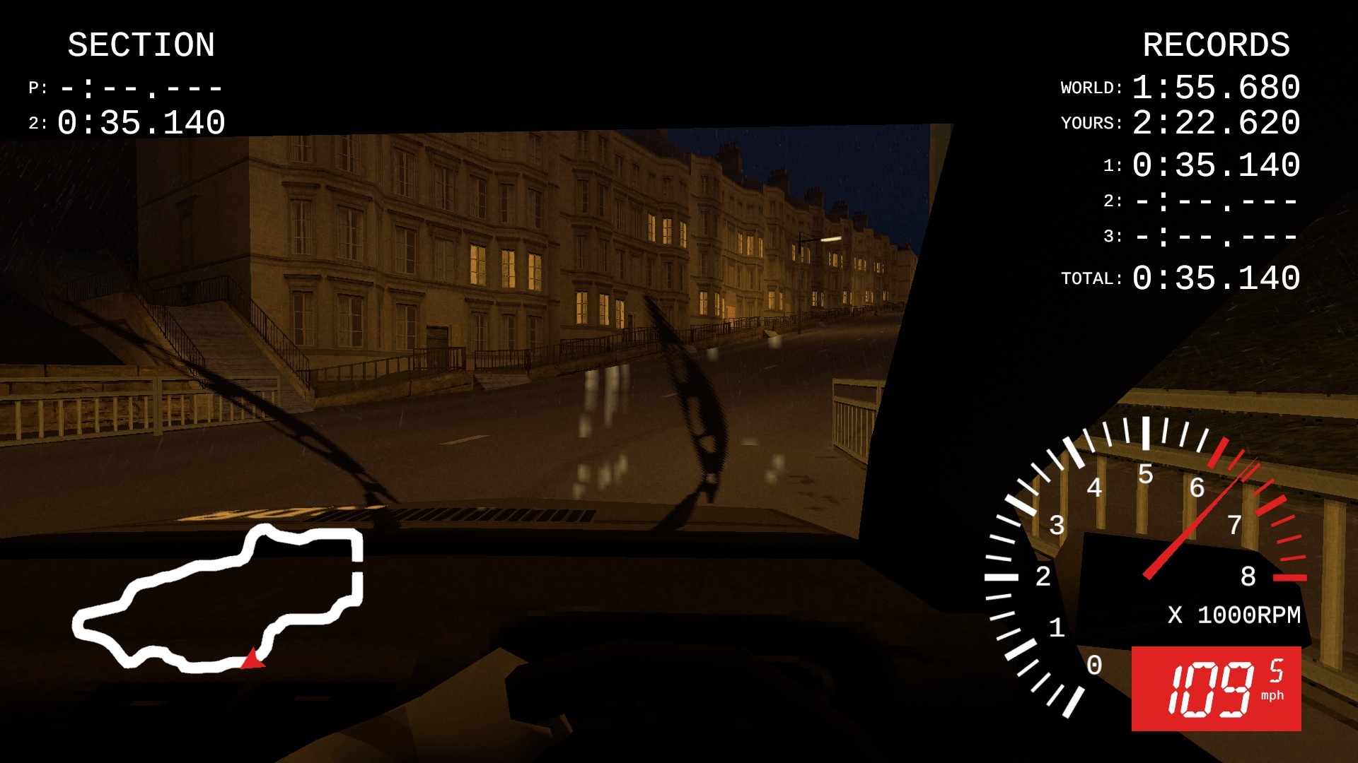 “3D time-attack motor racing in a city in Scotland where it rains like a bastard.”