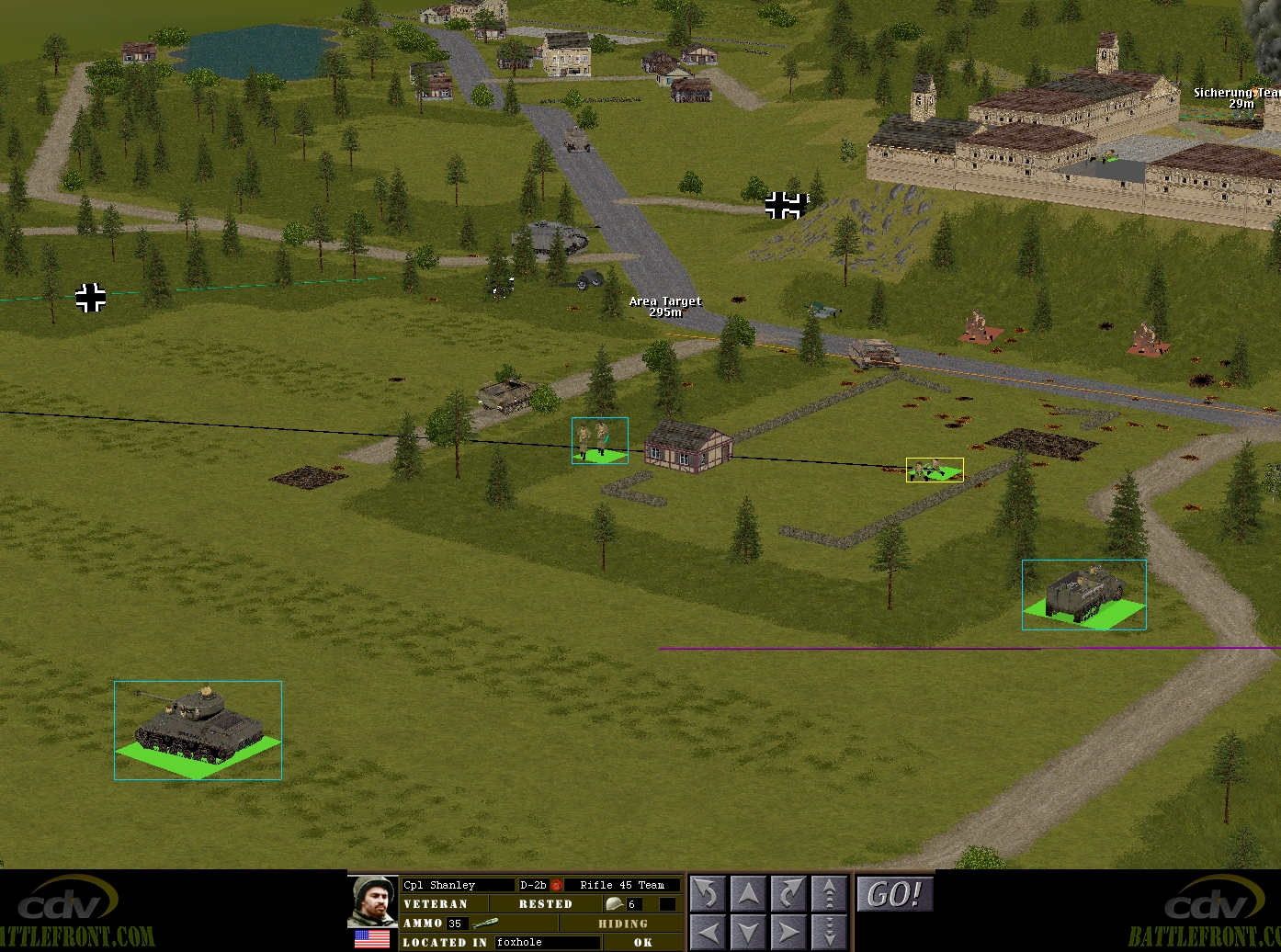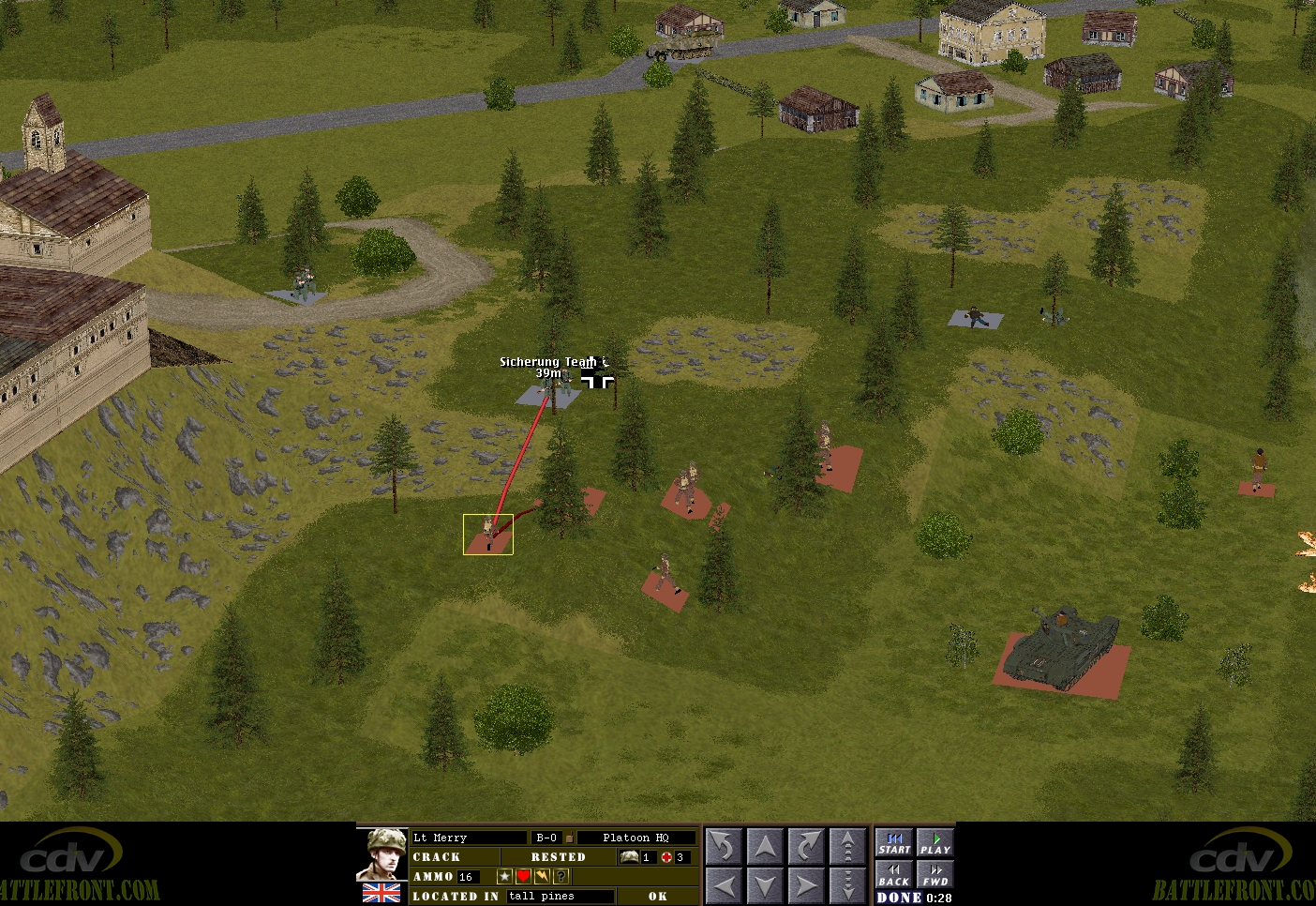 – Merry’s men (Lieutenant Merry + Sergeant Venison’s rifle squad + Corporal Fletcher’s M5A1 halftrack)