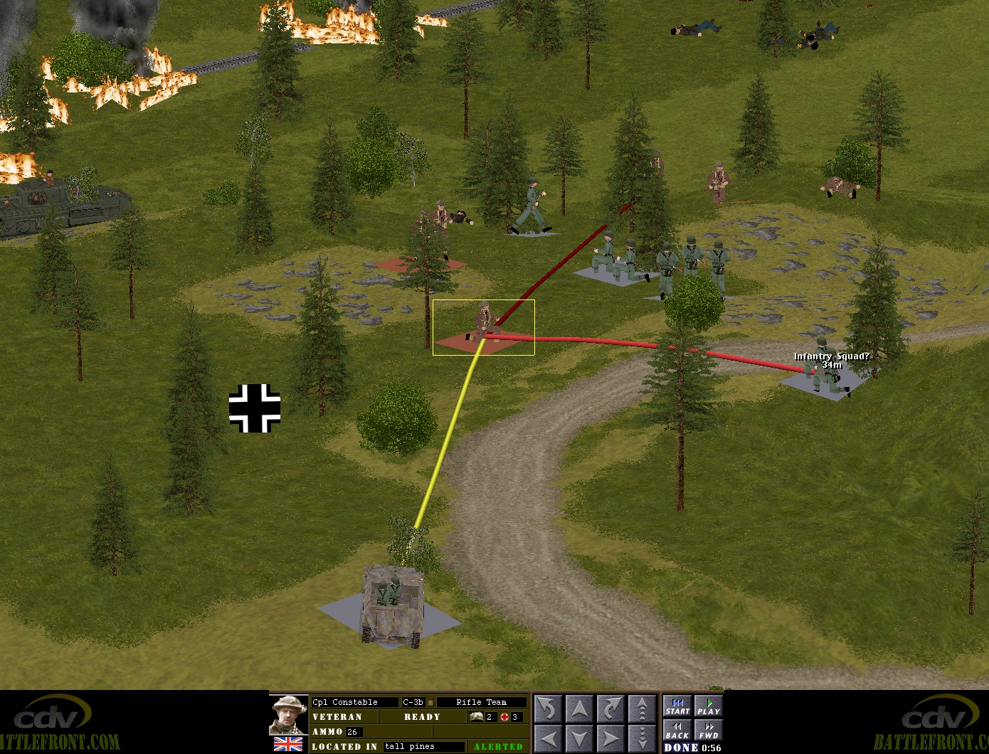 …Sergeant Sherwood’s B team reduce the risk of wildfires with a volley of Bren and Lee-Enfield fire.