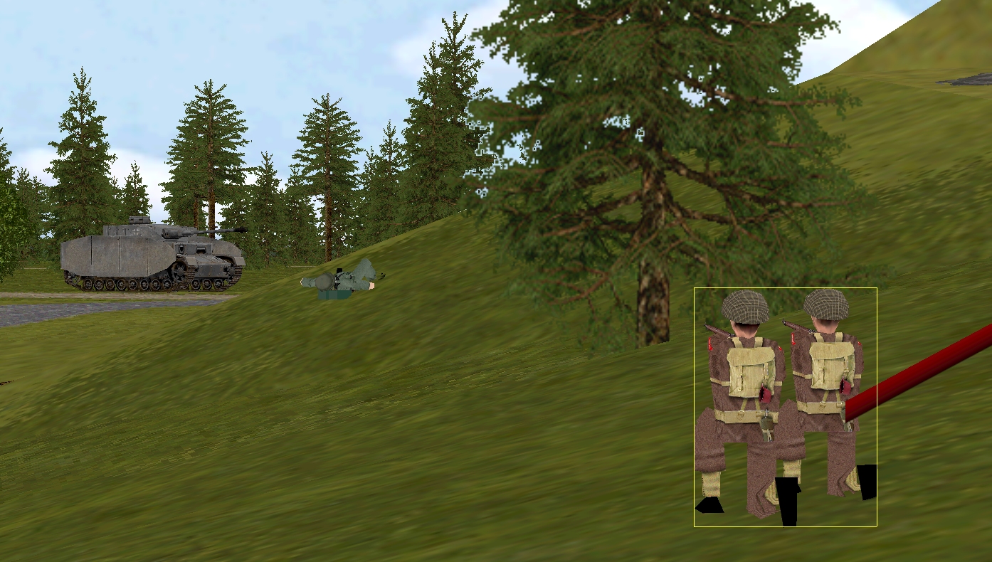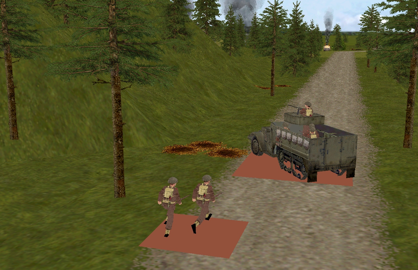 – Lieutenant Marian’s men (Marian’s HQ (4 men) + Sergeant Sherwood’s rifle squad (10 men, split) + PIAT team + 3 inch mortar team)