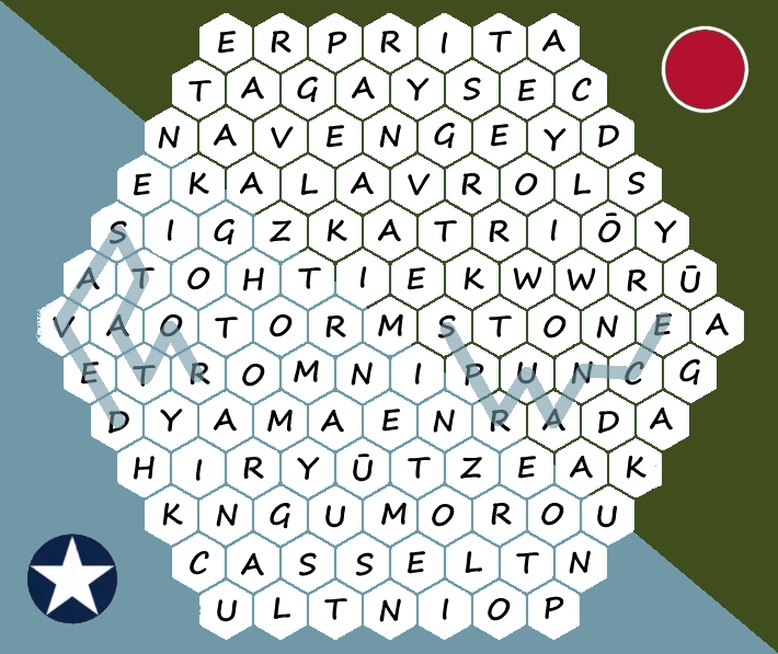 While I’m currently too busy grappling with Dijkstra’s algorithm to devote time to this balmy, palmy newcomer, I suspect some of you would relish a chance to refight one of WW2’s most important and close-run battles. £28 at present on Steam, Early Access TFA could be yours for absolutely nothing if you can manage to find the twenty Battle-of-Midway-related things and people hidden in the hexagonal wordsearch below.