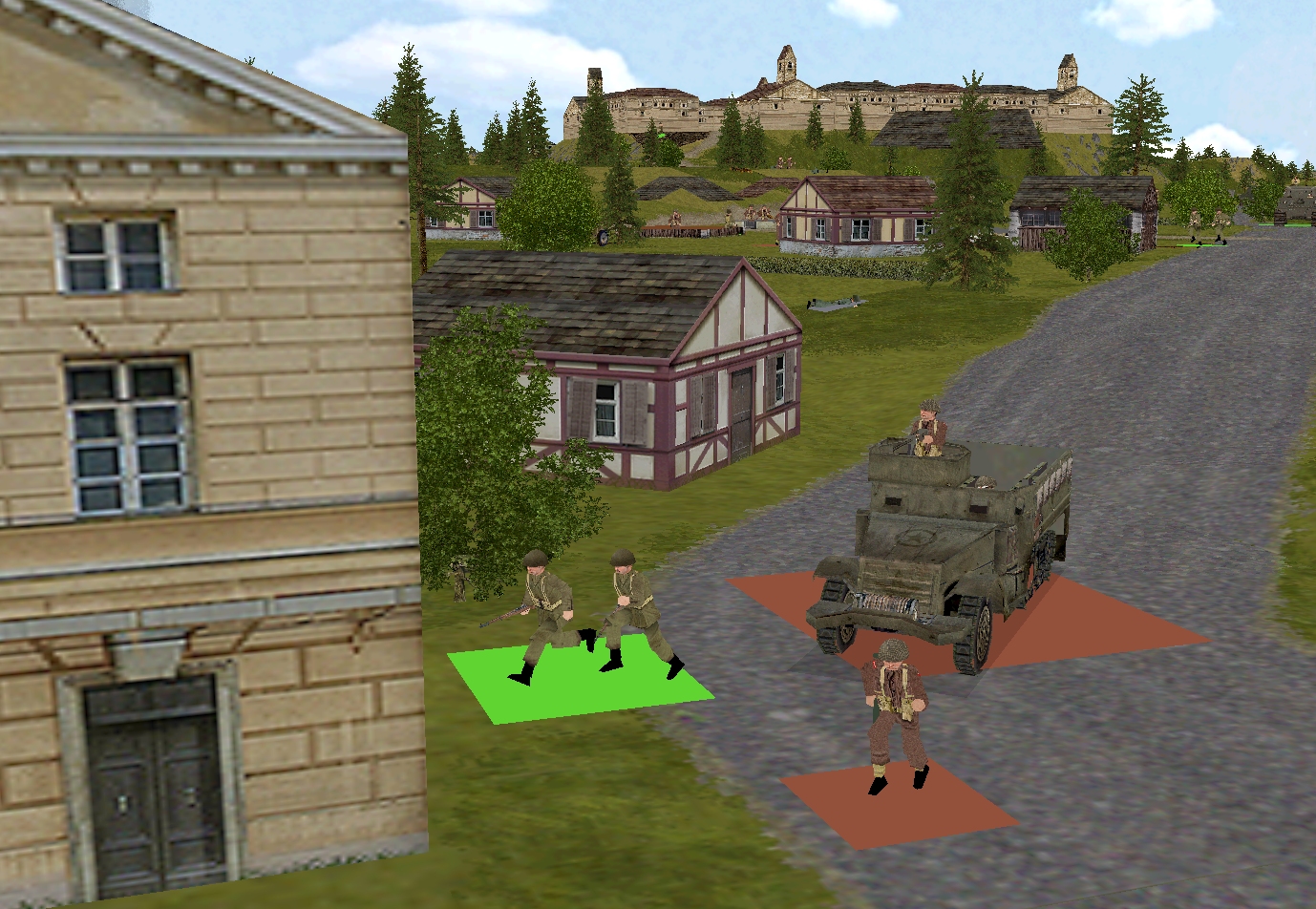 – Lieutenant Marian’s men (Marian’s HQ (4 men) + Sergeant Sherwood’s rifle squad (9 men, split) + PIAT team + 3 inch mortar team)