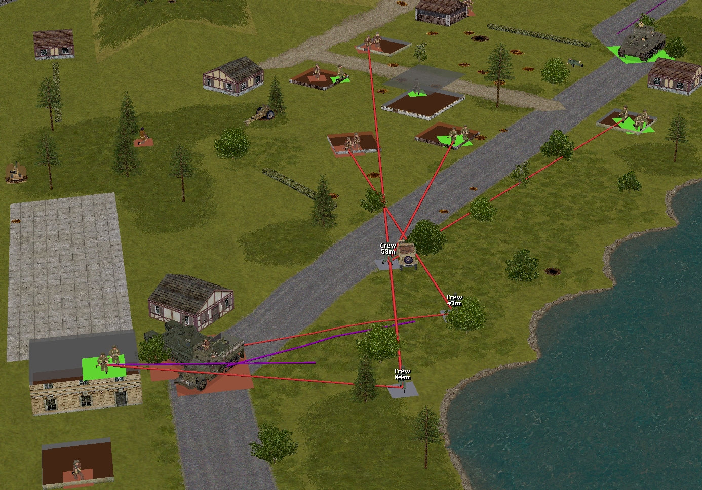– Captain Dale’s party (Six POWs armed with pilfered rifles and pistols) + Corporal Whitehand’s team (Two POWs armed with a pilfered Panzerschreck)