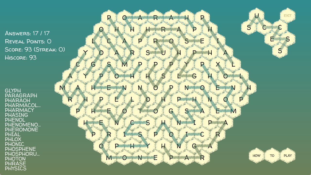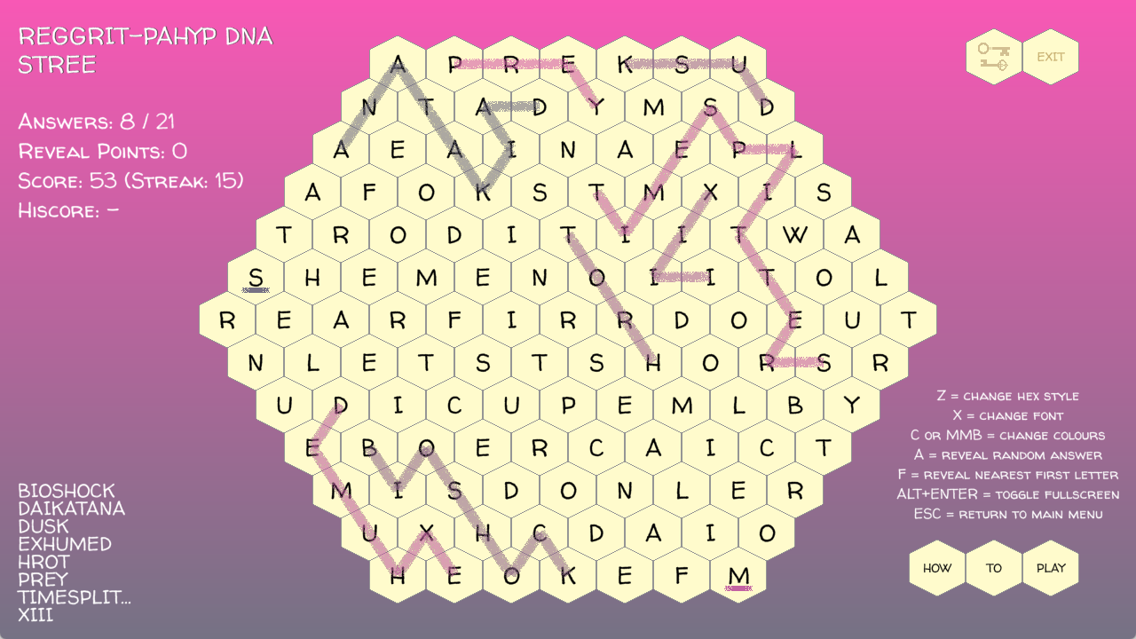 * Only available at the lower difficulty settings, RPs can be used to buy random answers and highlight the nearest first letter of an undiscovered word. Spent cannily, they can help demystify even the most baffling hives.
