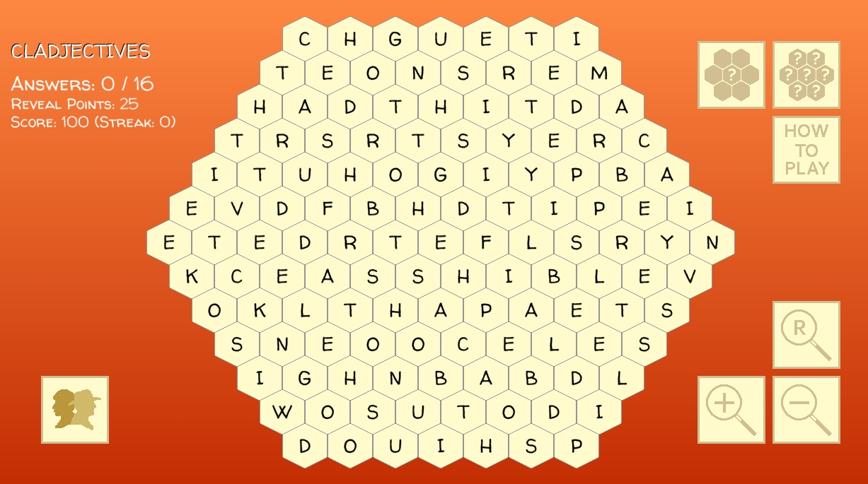 Identical for everyone, the weekly puzzle comes with a theme clue in the top-left corner. Buying random answers or random first letters with your fund of 25 Reveal Points is a good way to overcome early mystification, but will damage your score. To achieve a perfect ‘100’ score and win a Golden Helmet you’ll not only have to forgo Reveals, you’ll need to find answers without blundering.